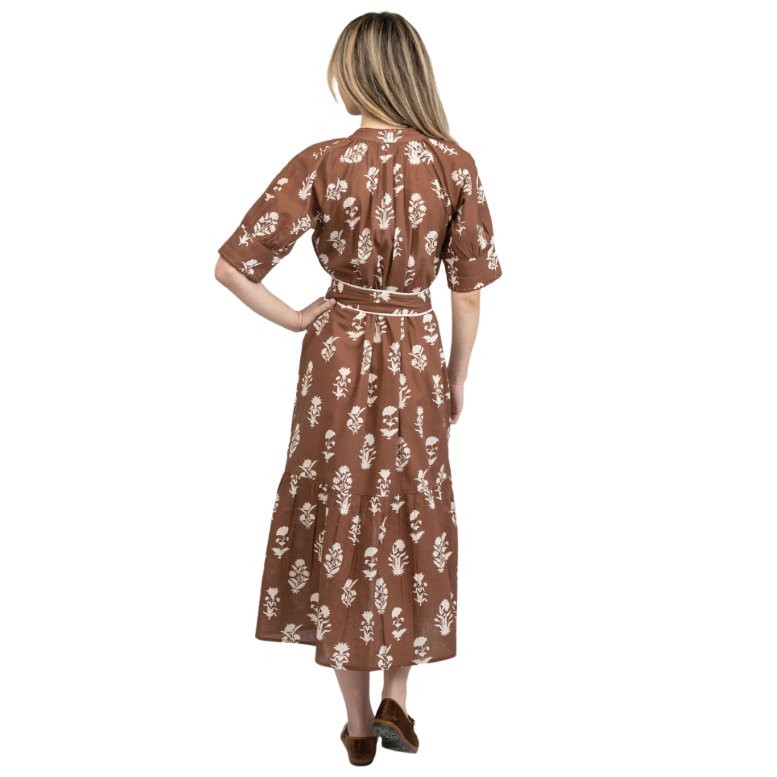 The Jane Dress features a v-neckline, quarter length sleeve and an optional belt and a playful ruffle hem.