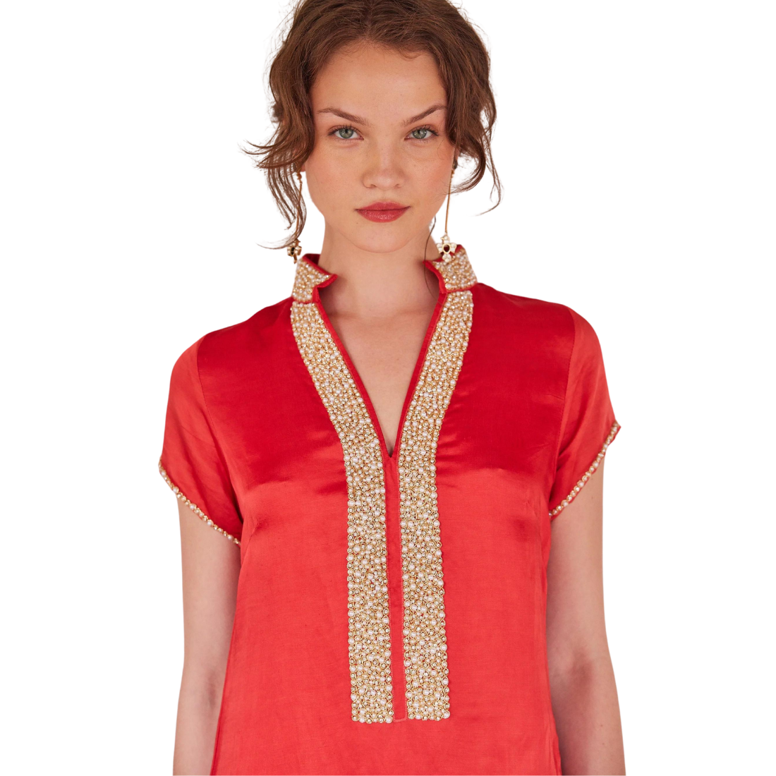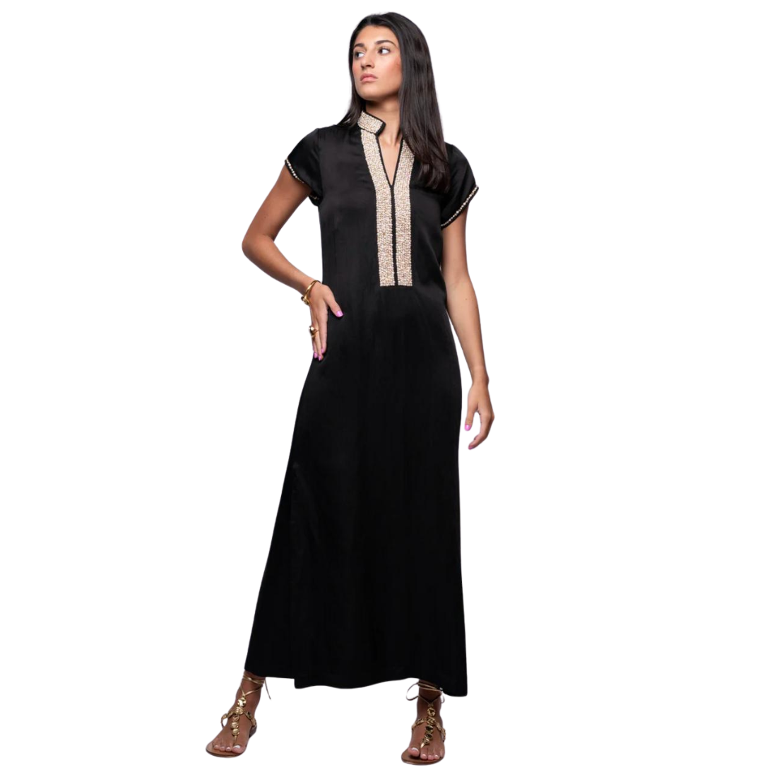 The Pearl Caftan is the instantly classic and ultra chic piece you'll be reaching for any special event! From evening soirees to poolside entertaining, this effortless silhouette exudes glamour with a hand beading on the mandarin collar and neckline.