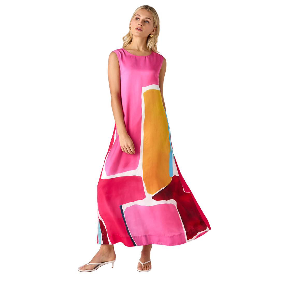 Colorful, flowy, and made for summer—this maxi by Crosby is your sunshine statement piece. Perfect for a tropical vacation, or easily dressed up for an event or wedding.