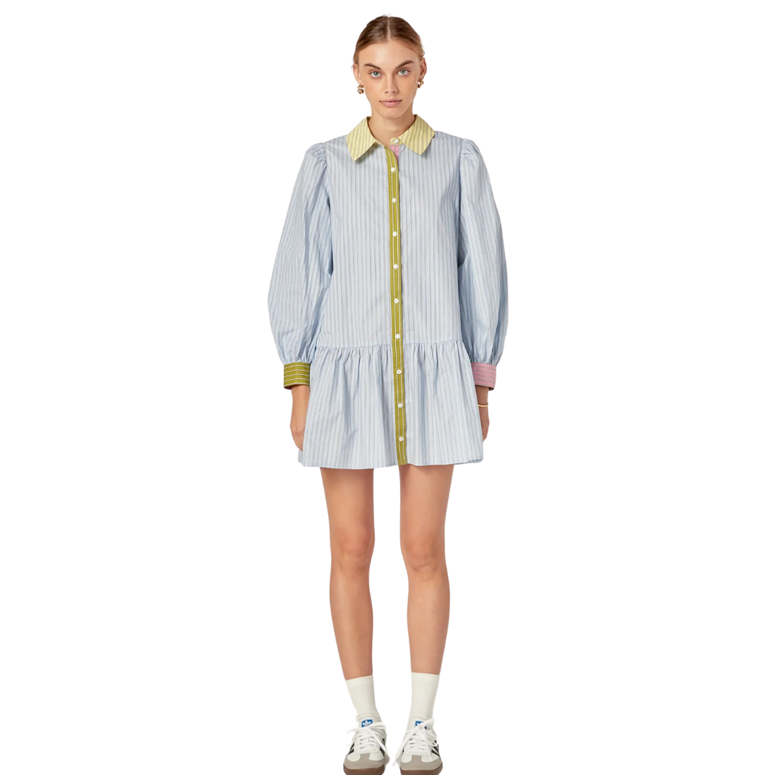 Looking for a dress that will turn heads? Color Block Stripe Mini Dress is here to impress! Its bold striped pattern and mini length make it a statement piece perfect for any occasion. The shirt dress style and collar add a touch of sophistication while still being comfortable and fun. This dress is a must-have for trendy fashionistas offering a flattering fit and endless styling options. Whether you want to stand out at a party or look chic at the office this dress has got you covered.
