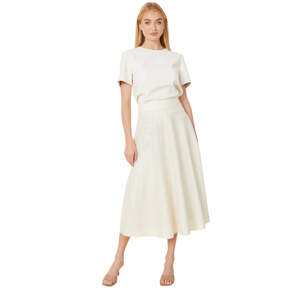 Dolce Cabo Perforated Long Skirt Creme
