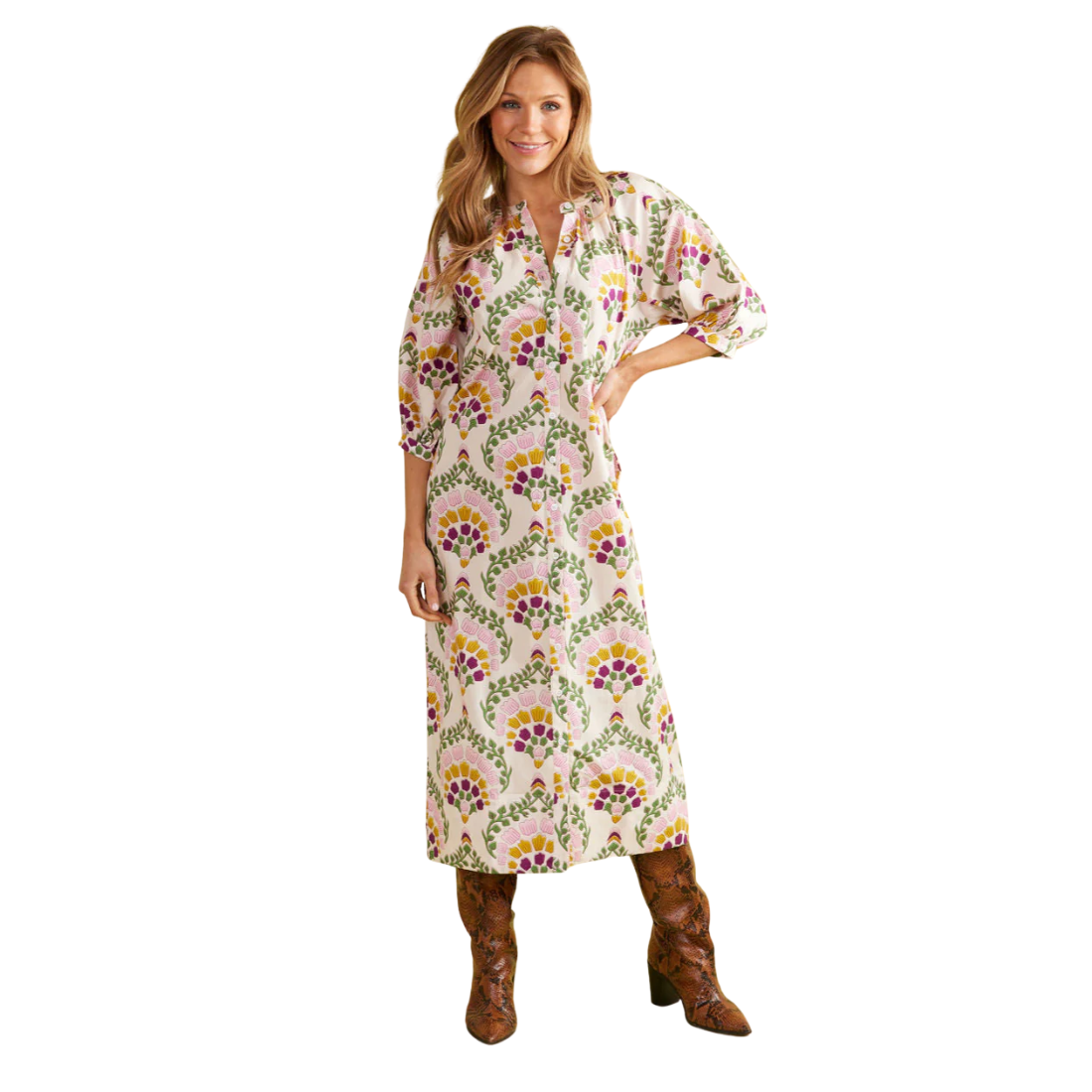 Experience effortless chic in the Madeleine Dress in Botanique. With mid-length sleeves, functional pockets, and a button-front design, this timeless maxi dress is perfect for any occasion. Versatile and sophisticated, it's a must-have for any wardrobe.