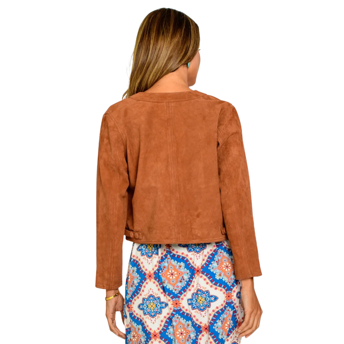 Say hello to Esme, Elizabeth James new Goat Suede jacket for Fall. She features oversized suede buttons, a side tab detail, and leopard print lining. Esme is a versatile, timeless piece that you will wear over and over for years to come!