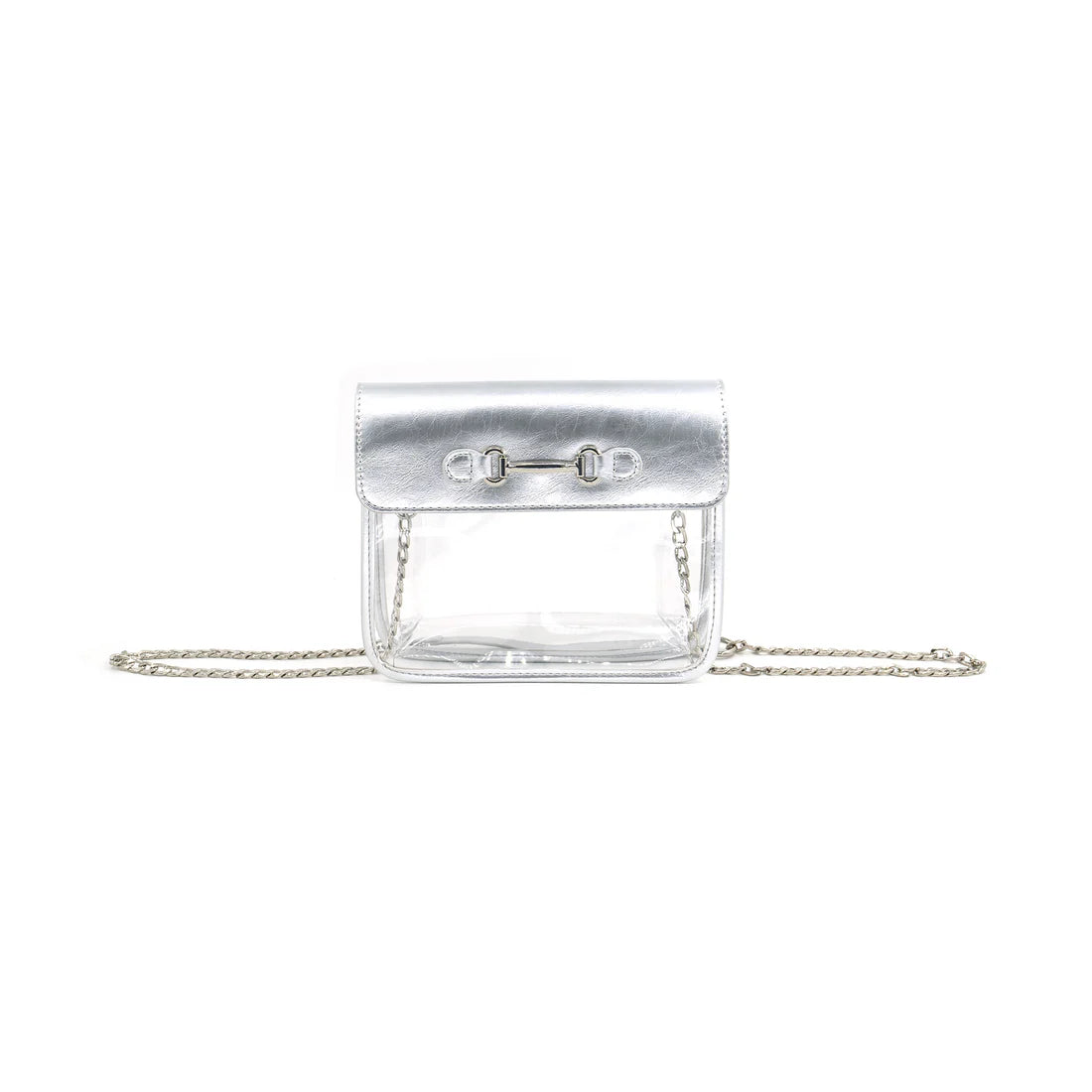 This stylish gold horsebit clear purse is perfect for football games, concerts, or any other event that requires clear bags! Comes with gold crossbody chain.