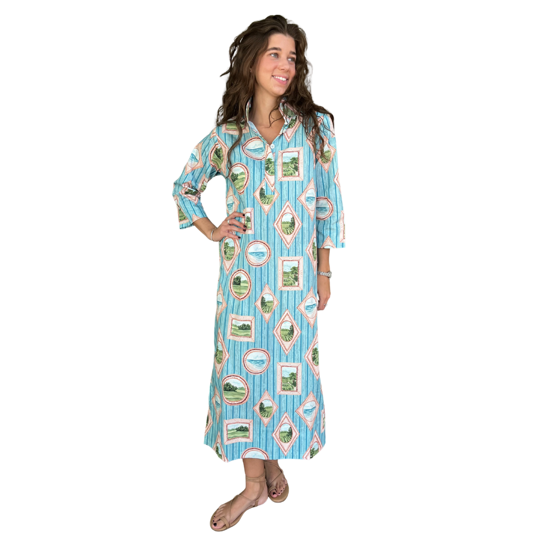 This "nod to mod" stand collar dress is the perfect "throw and go" piece! Extra high stand collar, covered placket, with 3/4 sleeve length sleeves. The Grace is Holly's favorite maxi dress and also a bestseller!