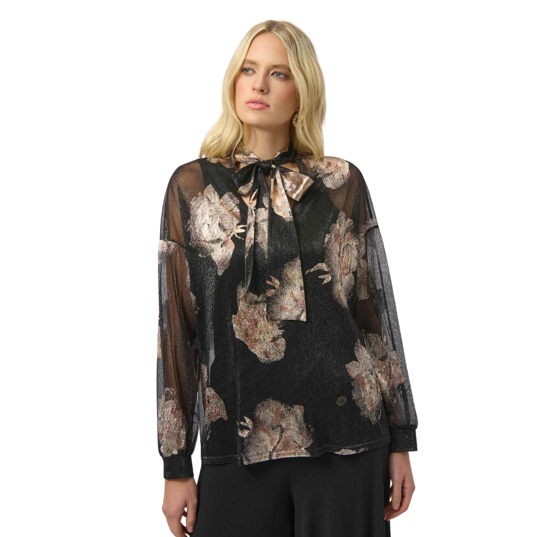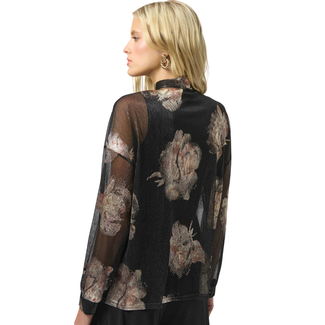 Joseph Ribkoff Plissé Knit Foiled Floral Top