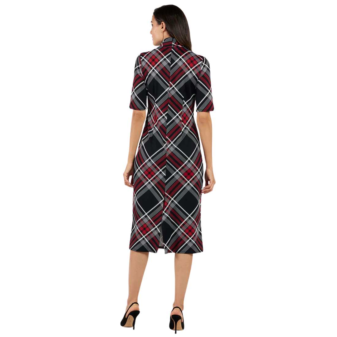 Introducing Nikita! This sleek sheath silhouette is designed with a modern mock neck and refined half sleeves, offering a flawless balance of structure and ease. Effortlessly sophisticated for the office and elevated enough for the evening. A perfect dress for any occasion.