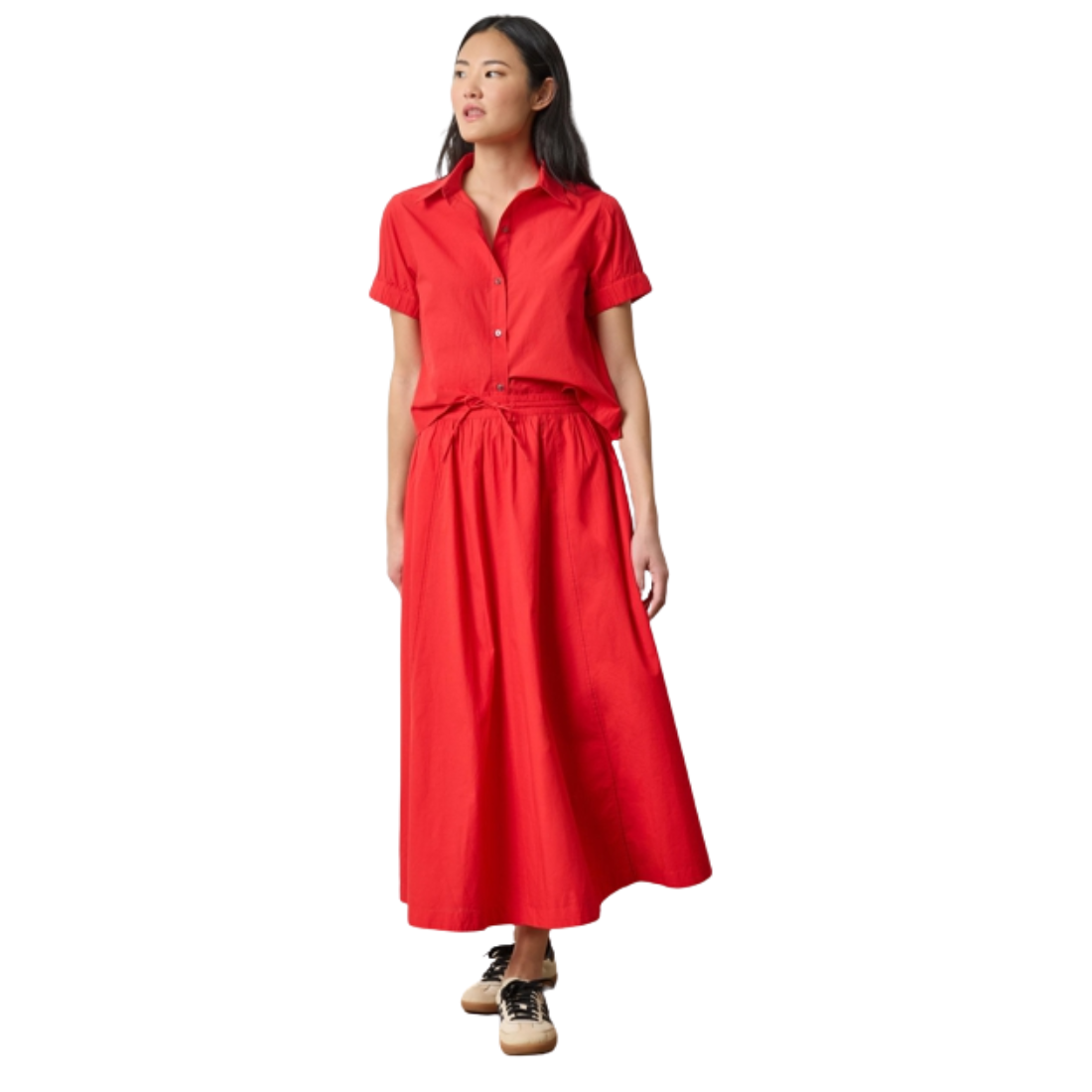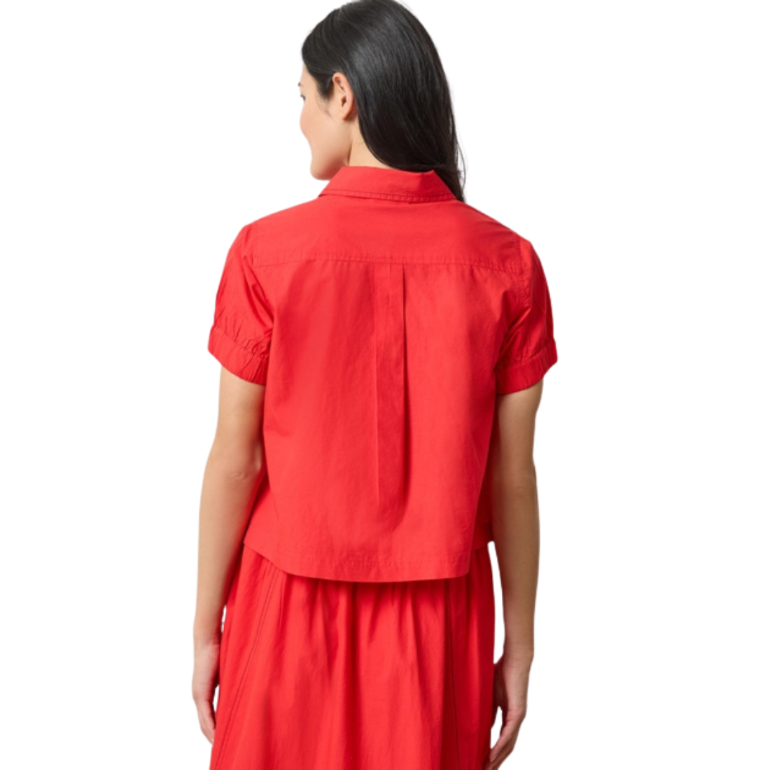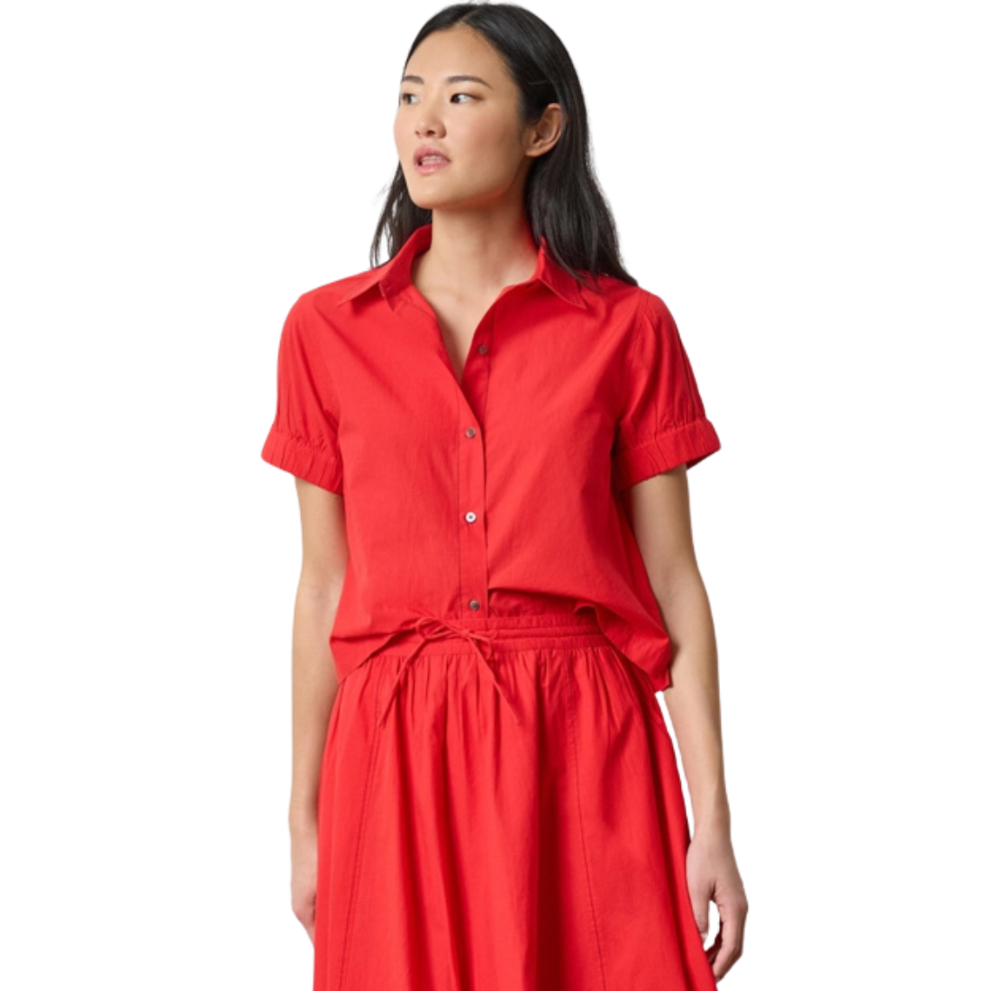 The Elastic Cuff Button Down in our crisp, smooth poplin is feminine and chic without the extra fluff. Short sleeves with a loose elastic cuff and subtle shirring add texture and dimension, while the classic collared button-down design keeps it polished. The shorter body length makes it the perfect match for the coordinating skirt or your favorite denim for an effortless look.