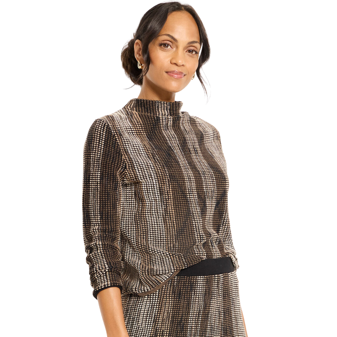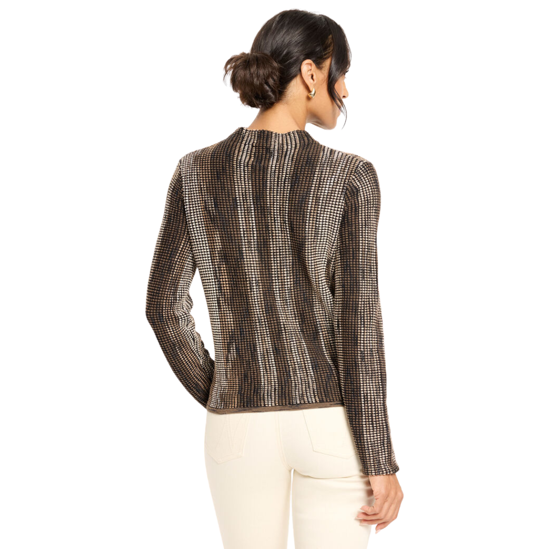Elegant, sophisticated, and unlike anything else in your closet. Our knit experts went all-in here: combining poppy pixel knit technique and five different kinds of space dye yarn to create the stunningly unique mélange of color and pattern. The funnel neck finish adds one last touch.