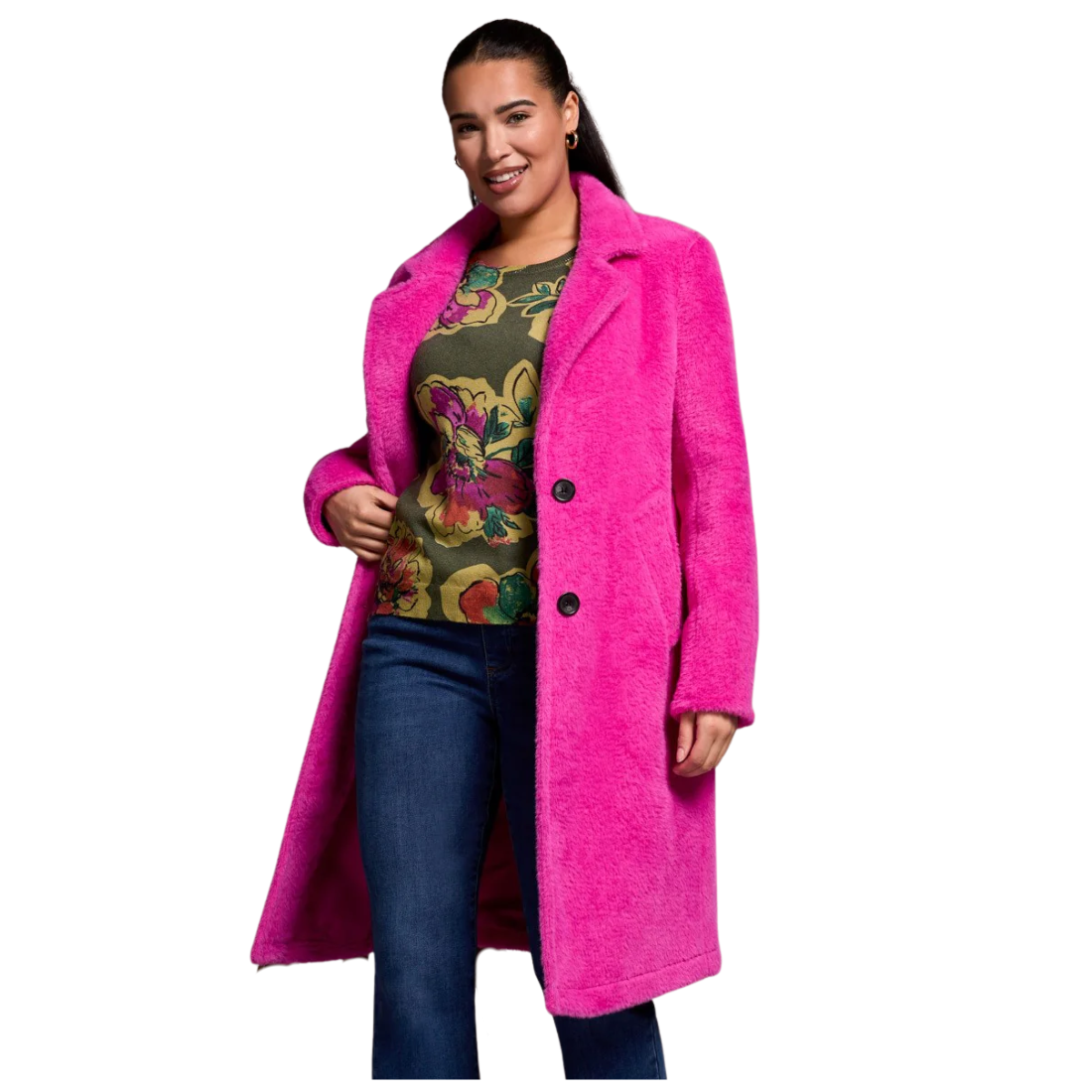 Wrap yourself in warmth and style with this longline coat, made from soft teddy faux fur for ultimate coziness. The buttoned front offers a secure fit, while the classic notched lapels elevate your look with timeless sophistication. Functional pockets keep your hands warm or provide space for your essentials.